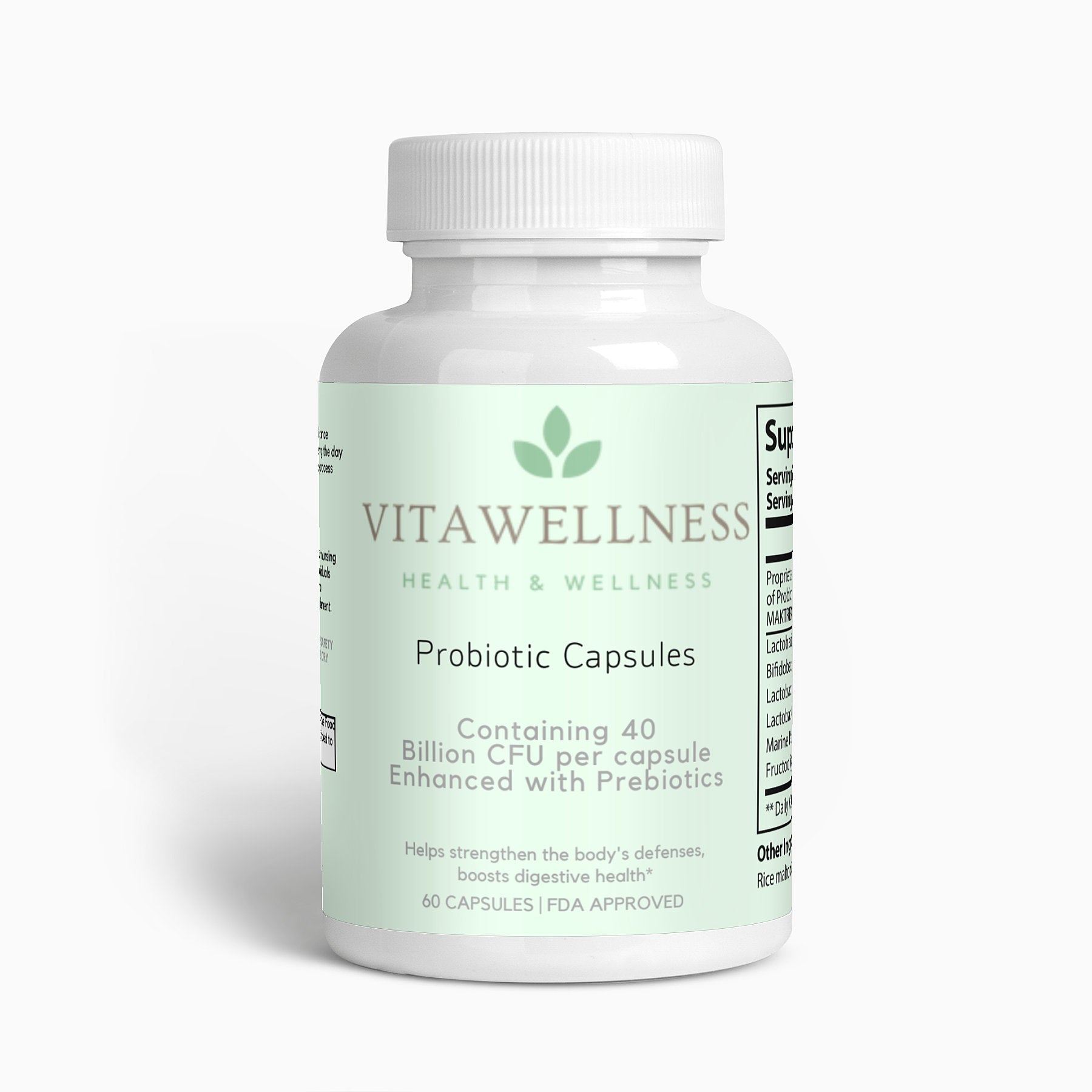Boost your overall wellness with our Probiotic Supplement! Made with 40 billion beneficial bacteria and prebiotics, our formula supports digestive health, improves immune function, and enhances mood. Experience the power of probiotics and take a step towards a healthier, happier you!